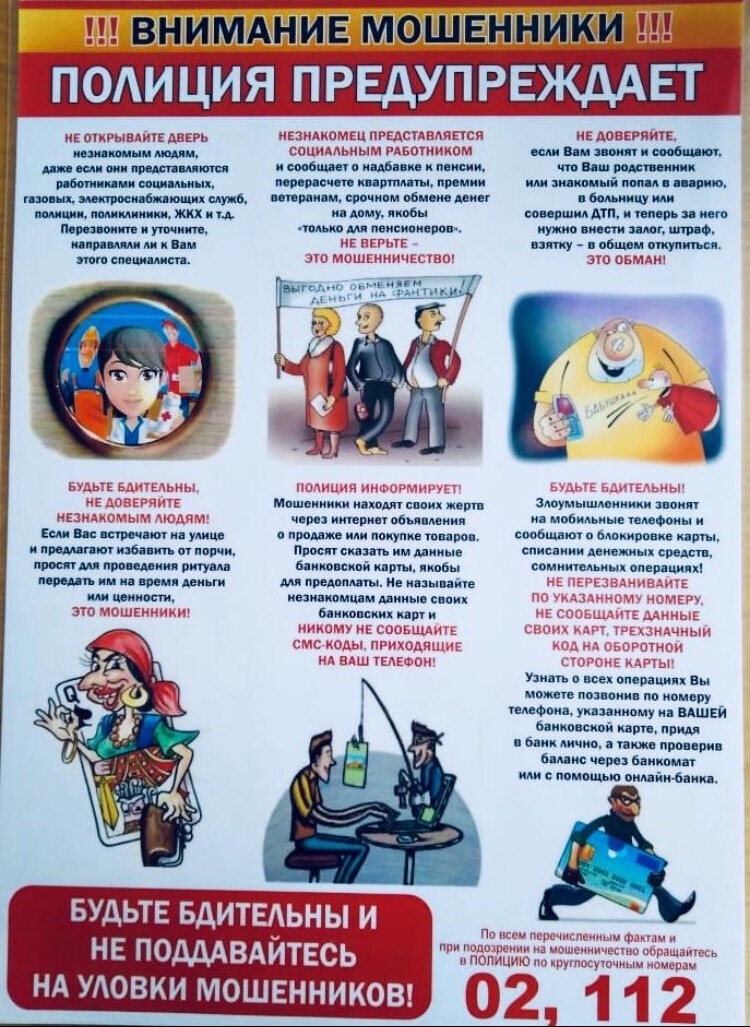 Полицейские напоминают о необходимости быть бдительными. Не верить недостоверным источникам. Быть осторожными при общении с незнакомыми людьми по телефону, в социальных сетях и мессенджерах. Не впускать незнакомых людей̆ в дом. Не сообщать посторонним данные о себе и своих банковских счетах. Не сообщать свои персональные данные.